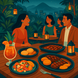 * Jetzt kann Peter das Abendessen mit seinen Freunden im Restaurante Verano Bogotá genießen!