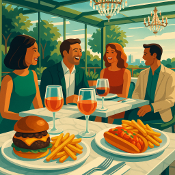Nehmen wir an, Peter hat einen großartigen Morgen und beschließt, seine drei Freunde am selben Tag um 18 Uhr ins RH Rooftop Restaurant at RH Oak Brook einzuladen.