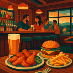 * Jetzt kann Peter das Abendessen mit seinen Freunden im Rising Sun Bar & Kitchen Palmyra genießen!