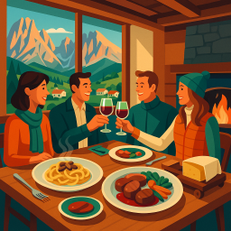 * Jetzt kann Peter das Abendessen mit seinen Freunden im Ristorante Malga Panna genießen!