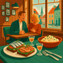 * Jetzt kann Peter das Abendessen mit seinen Freunden im Schønnemann København genießen!