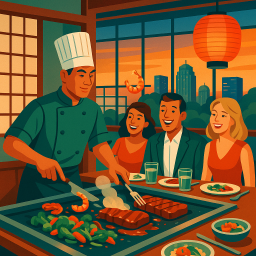 I made reservations for 8:15 we didn't get the chef to our table till 9:20. The food was fine the chef was ok. Now let's get to the absent waitress, we were getting our pun waters from bar, our own sprite (not sprite) from bar. She came to