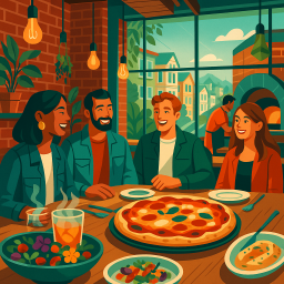 * Jetzt kann Peter das Abendessen mit seinen Freunden im side a San Francisco genießen!