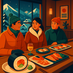 * Jetzt kann Peter das Abendessen mit seinen Freunden im Sushi Azabu NISEKO Kutchan genießen!