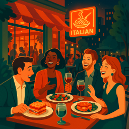 * Jetzt kann Peter das Abendessen mit seinen Freunden im Terilli's Dallas genießen!