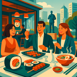* Jetzt kann Peter das Abendessen mit seinen Freunden im The Bigmouth Sushi & Grill Sandton genießen!