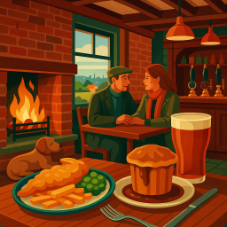* Jetzt kann Peter das Abendessen mit seinen Freunden im The Crown Inn Birmingham genießen!