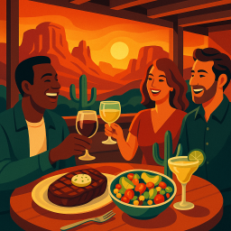 * Jetzt kann Peter das Abendessen mit seinen Freunden im The Hudson Sedona genießen!