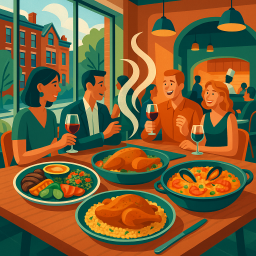* Jetzt kann Peter das Abendessen mit seinen Freunden im Three 1 One Boston genießen!