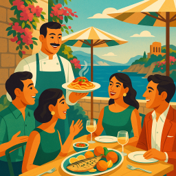 * Jetzt kann Peter das Abendessen mit seinen Freunden im Trattoria Da Nino Taormina genießen!