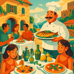 * Jetzt kann Peter das Abendessen mit seinen Freunden im Trattoria La Campagnola Milazzo genießen!