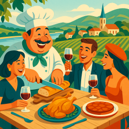 * Jetzt kann Peter das Abendessen mit seinen Freunden im Villa Fareva Tain-l'Hermitage genießen!